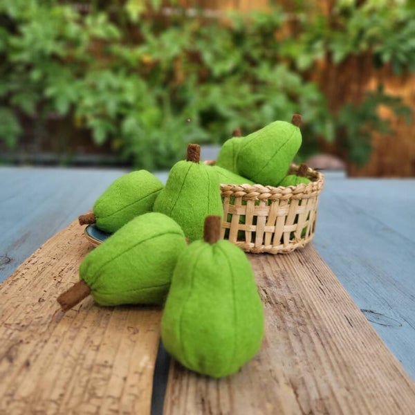 Birne aus grünem Filz für die Kinderküche/Spieleküche/Puppenküche oder Kaufmannsladen