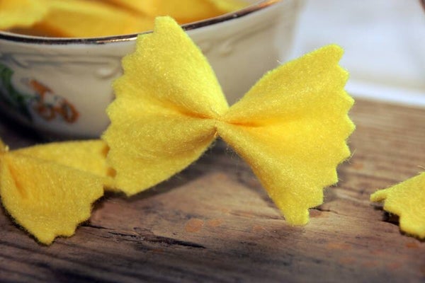 Farfalle aus gelbem Filz für die Kinderküche/Spieleküche/Puppenküche oder Kaufmannsladen