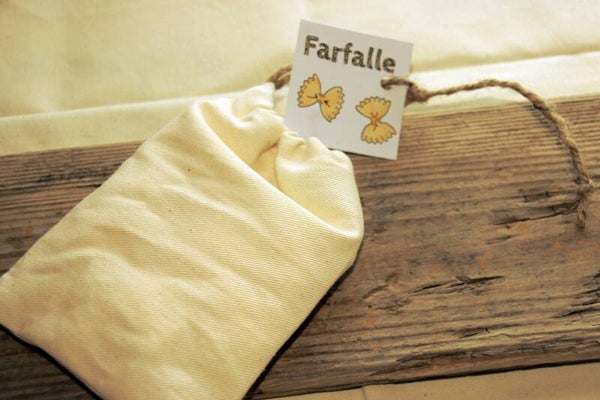 10 Nudeln im handgenähten Säckchen mit handkoloriertem Schild.
